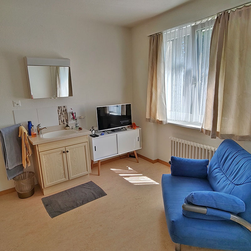 Wir bieten ein niederschwelliges Wohnangebot an, ohne viele Verpflichtungen. Es gibt vier Wohnmöglichkeiten: Im Haupthaus, in einer unserer Aussenwohnungen, in einer Einzelwohnung in unserem kollektiv betreuten Einzelwohnen oder in einem Studio. Inbegriffen in allen Wohnformen ist die gesundheitliche Unterstützung durch Ihre Bezugsperson und weiteren dipl. Fachpersonen, Vollverpflegung, Wäschebesorgung und wöchentliche Reinigung. Es besteht die Möglichkeit, an einem regulationsmedizinischen Programm teilzunehmen.